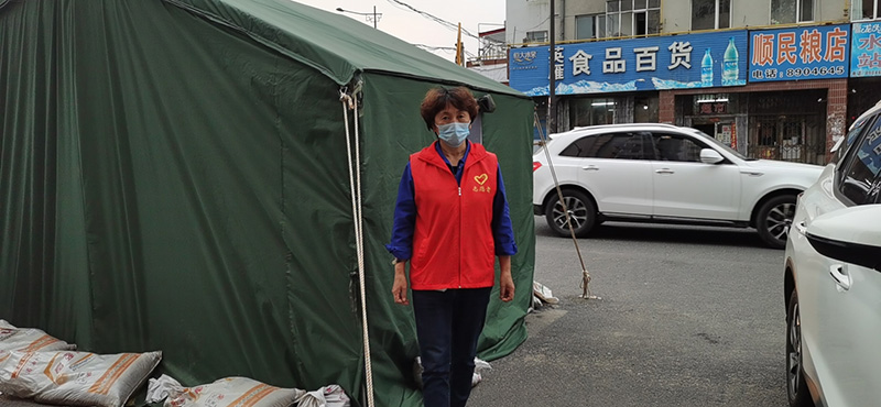于是,她花了1200元,买个帐篷,在工地做了几根钎子,请公司项目经理派两个人带着工具,把帐棚固定在小区门口。